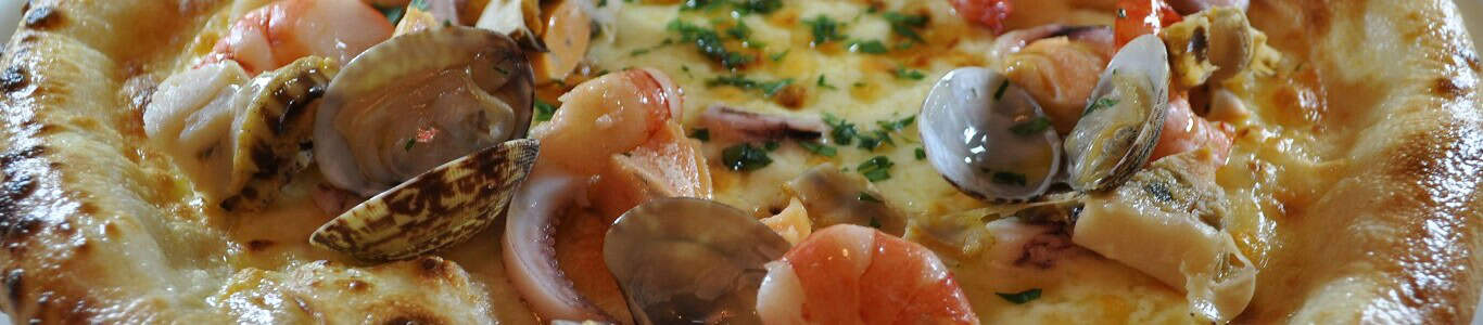 おすすめです!天然海老とイカ、帆立をたっぷり乗せたクリームソースが、病みつきになる一枚です。魚介とクリームソースは黄金の組み合わせですが、隠し味にある調味料を入れることで、更に魚介の旨味を引き出してくれています。もしピッツァに迷ったらこちらをどうぞ!