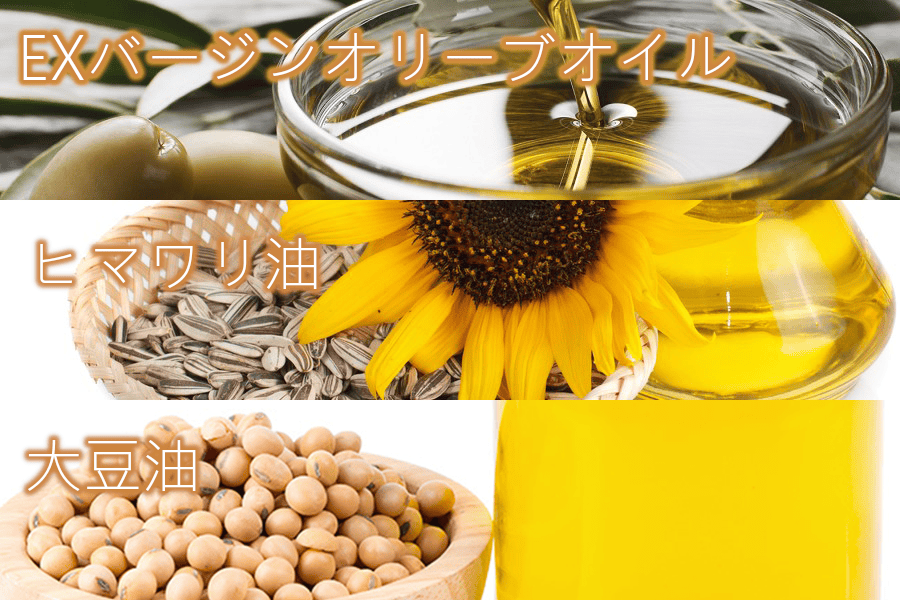一般的なサラダ油がもたらすのは残念ながらデメリットばかり…。なので、マデーニでは一滴も使用しておりません。この3種類は身体にさまざまなメリットをもたらしてくれるので、ドレッシングや、揚げ油など、それぞれの特徴を活かした使い方をしています。